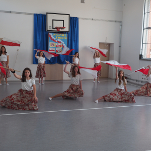 W związku ze zbliżającym się również Dniem Flagi Rzeczypospolitej Polskiej uczniowie w czasie akademii przypominającej okoliczności uchwalenie konstytucji zaprezentowali wyjątkowy układ choreograficzny z polskimi flagami, który w sposób artystyczny ukazał przywiązanie i szacunek dla barw narodowych.