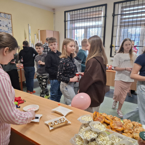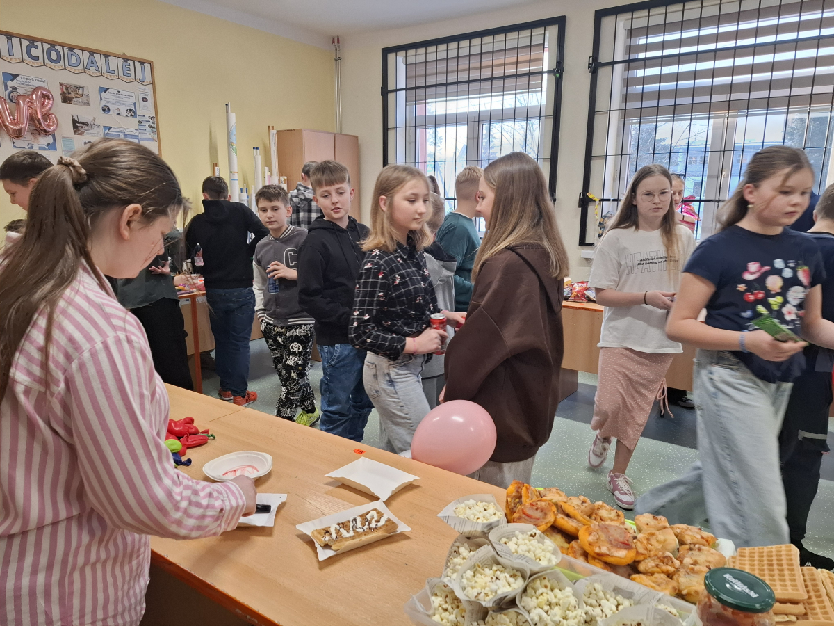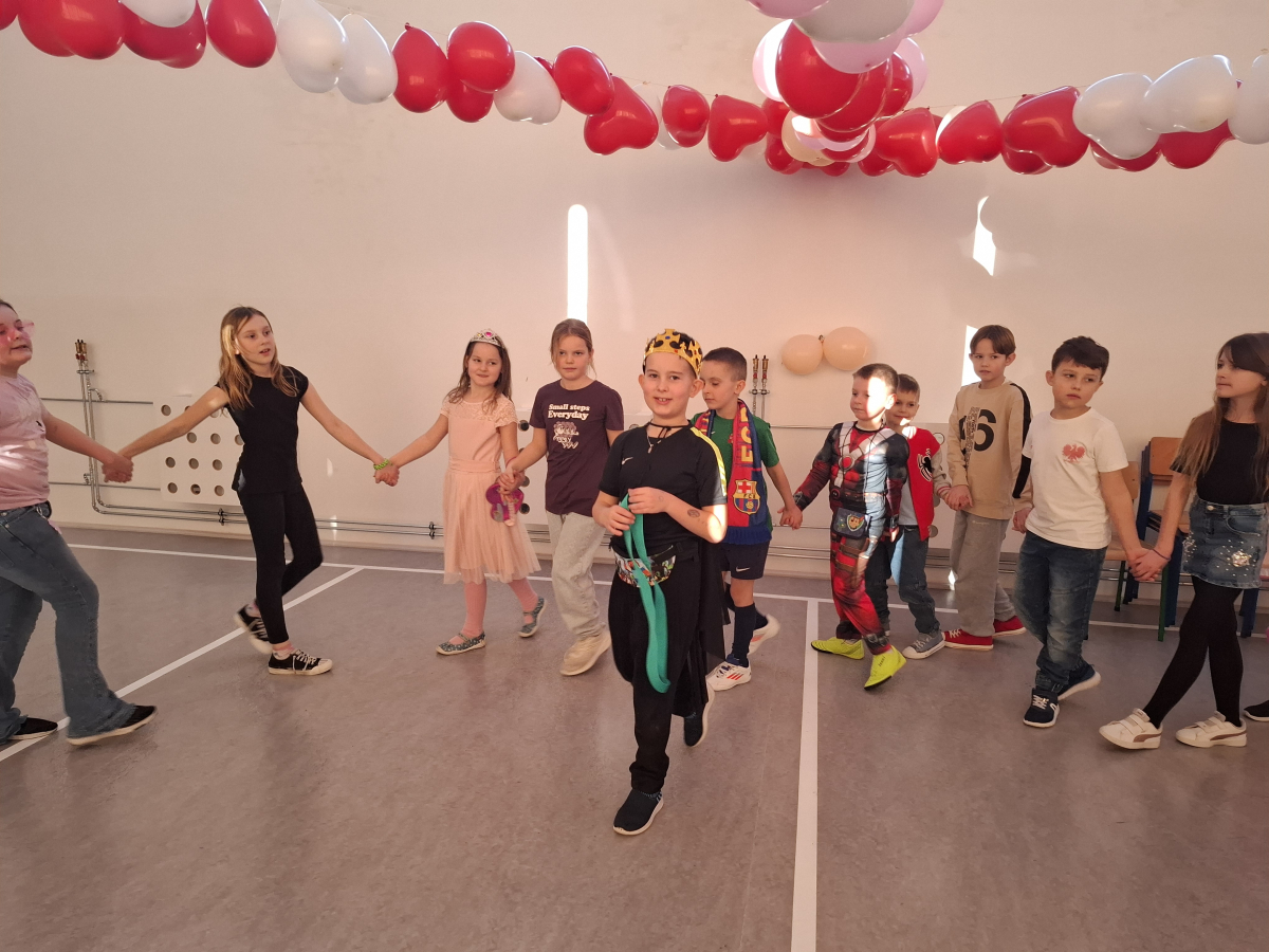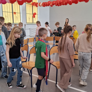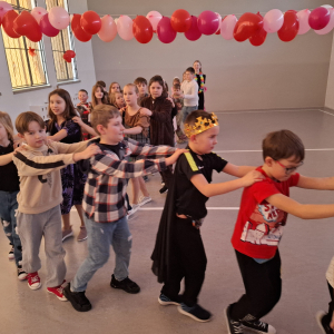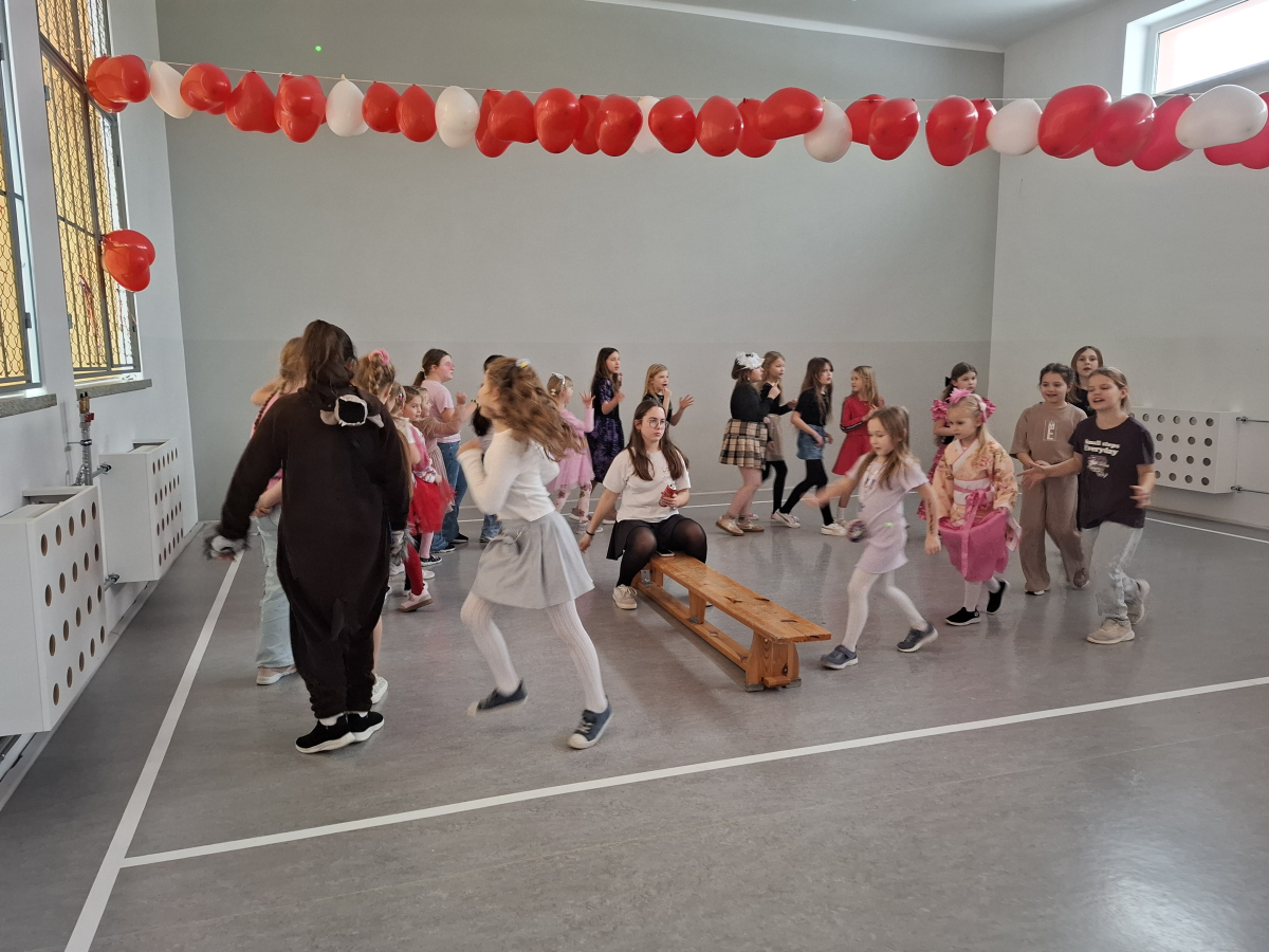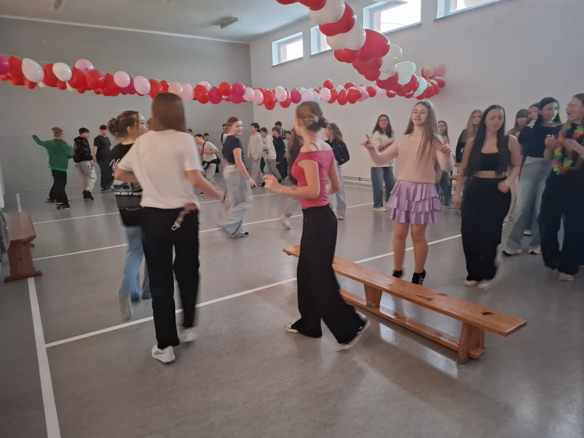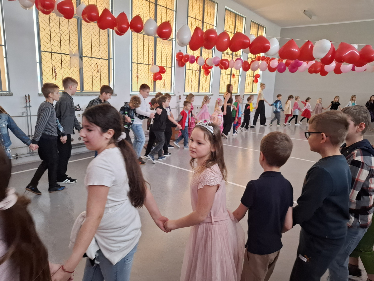 W ostatnim tygodniu przed feriami w naszej szkole odbyła się dyskoteka walentynkowa. Uczniowie bawili się w dwóch grupach dla klas młodszych i starszych. Na wszystkich czekało wiele atrakcji. Każdy z radością uczestniczył w licznych zabawach i konkursach. W sklepiku były słodycze, napoje, ale też ciepłe przekąski przygotowywane przez rodziców uczniów klasy ósmej. Na loterii losowano atrakcyjne nagrody. Było wielu chętnych na przyklejenie tatuażu, malowanie twarzy czy skorzystanie z wróżby. Wybrano także króla i królową balu. Czas szybko mijał na zabawach i tańcu przy muzyce. Organizatorami byli uczniowie klasy ósmej z wychowawcą panią Grażyną Antosz.