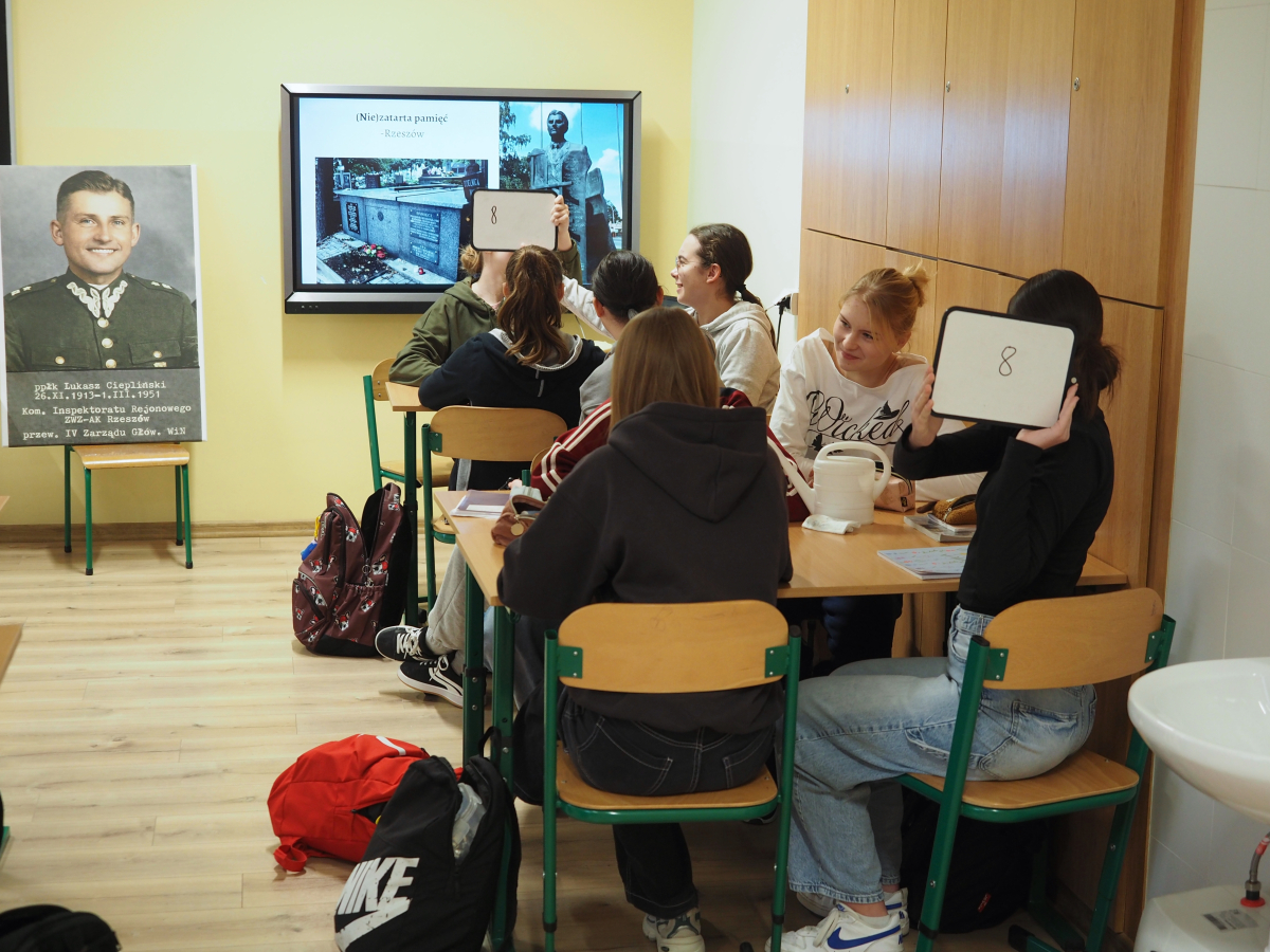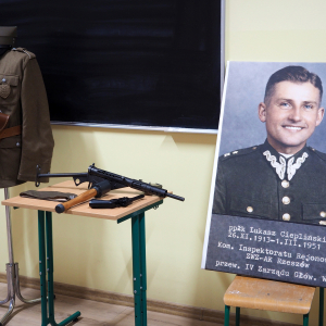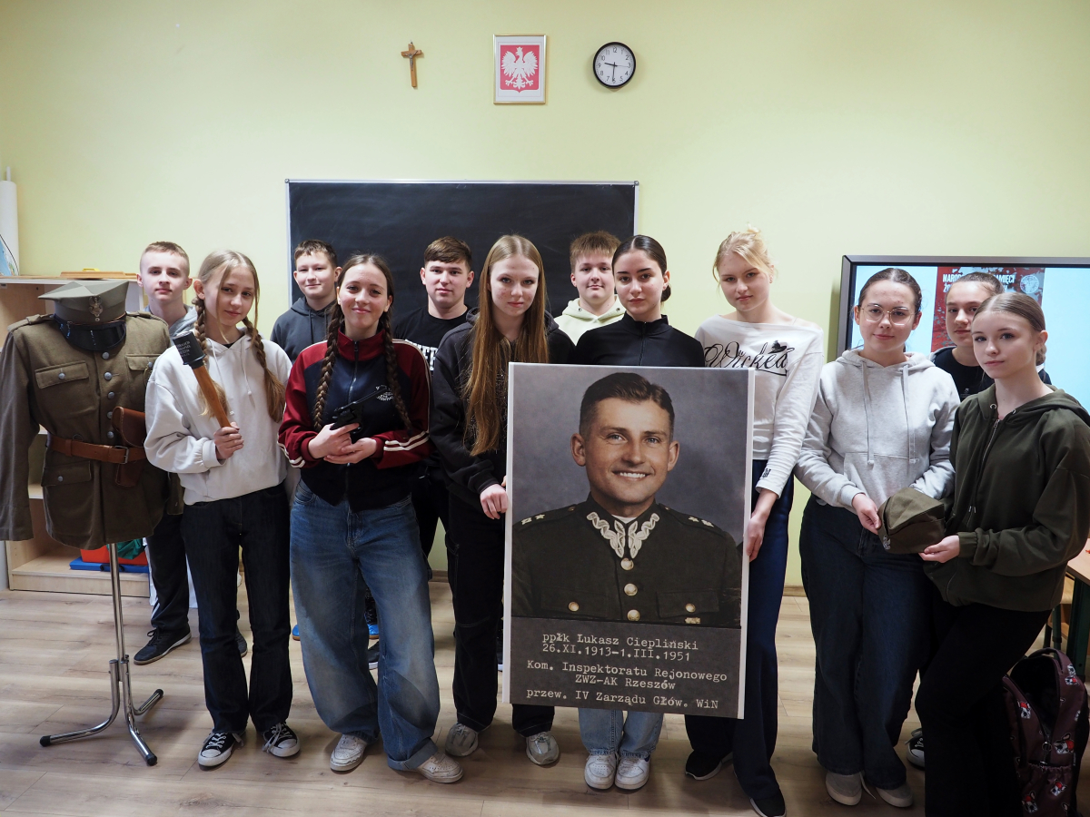 Podobnie jak w poprzednich latach, uczniowie klasy VIII z naszej szkoły wzięli udział w prelekcji oraz mini konkursie poświęconym życiu i działalności pułkownika Łukasza Cieplińskiego – wybitnego bohatera narodowego, żołnierza Armii Krajowej i ostatniego komendanta organizacji „Wolność i Niezawisłość”, która sprzeciwiała się powojennej komunizacji Polski.