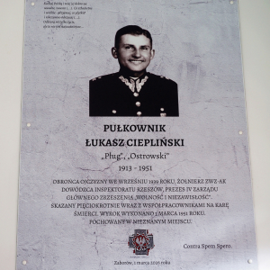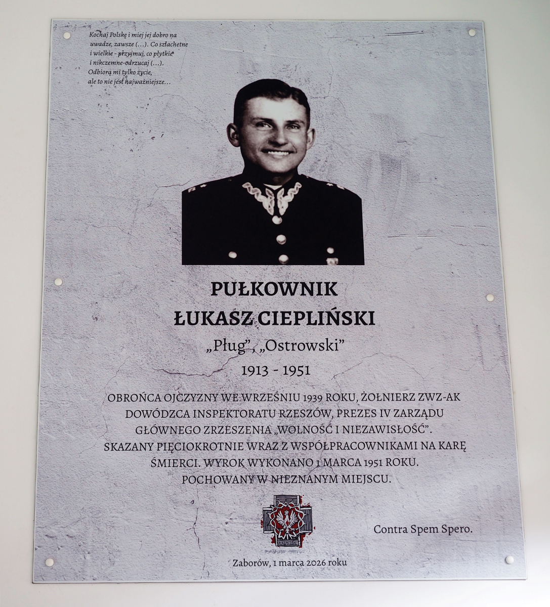 Rok 2026 jest dla nas szczególnie ważny, ponieważ przypada 75. rocznica egzekucji pułkownika Łukasza Cieplińskiego i jego sześciu podkomendnych. Z tej okazji, w holu naszej szkoły, zawisły portrety dwóch zasłużonych polskich bohaterów – pułkownika Cieplińskiego oraz rotmistrza Witolda Pileckiego. Te tablice to symboliczny wyraz szacunku i pamięci o ludziach, którzy poświęcili życie w obronie wolnej Polski.
