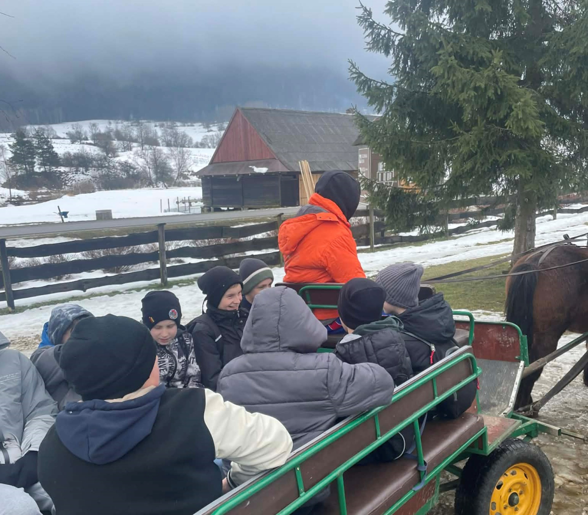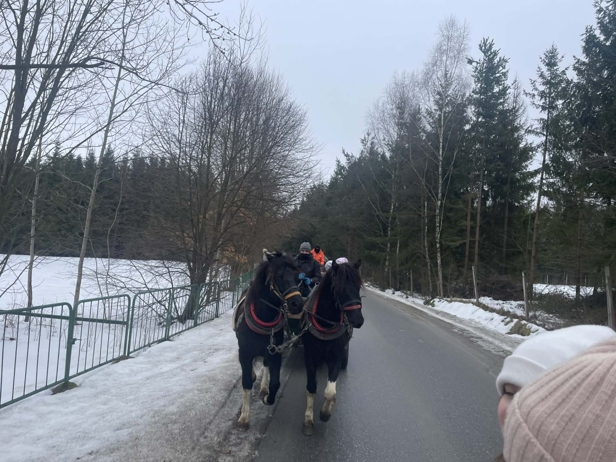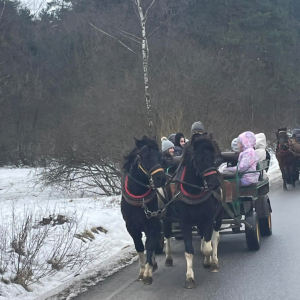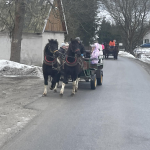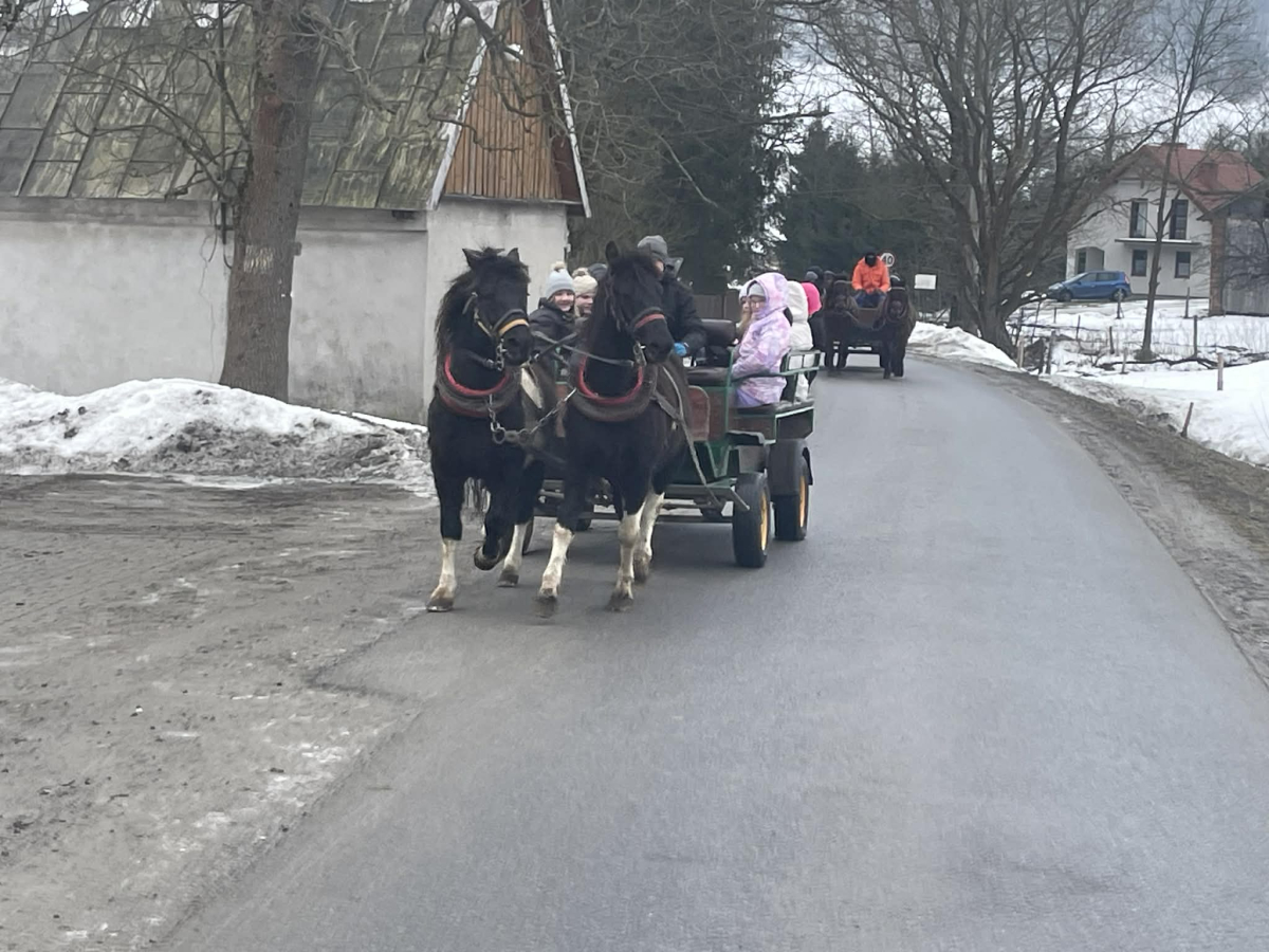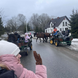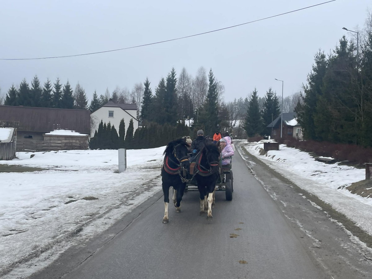 Dnia 28 stycznia 2026 r. uczniowie klas 4, 5 i 6 Publicznej Szkoły Podstawowej w Zaborowie wzięli udział w wyjeździe do Regietowa. Choć planowany kulig nie mógł się odbyć z powodu braku śniegu, organizatorzy szybko znaleźli atrakcyjne rozwiązanie – uczniowie udali się na przejażdżkę bryczkami, która dostarczyła wielu radości i niezapomnianych wrażeń.