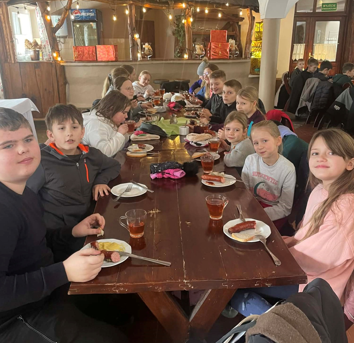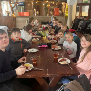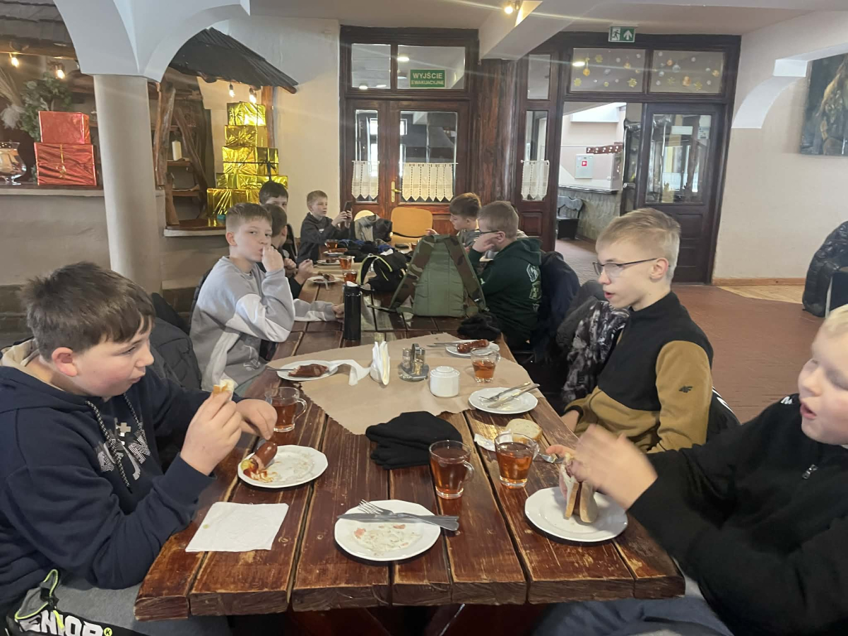 Po przejażdżce uczestnicy spotkali się przy ognisku w karczmie, gdzie wspólnie piekli kiełbaski, spędzając czas w miłej i ciepłej atmosferze. Wyjazd był doskonałą okazją do integracji uczniów, aktywnego wypoczynku oraz poznawania uroków regionu.
