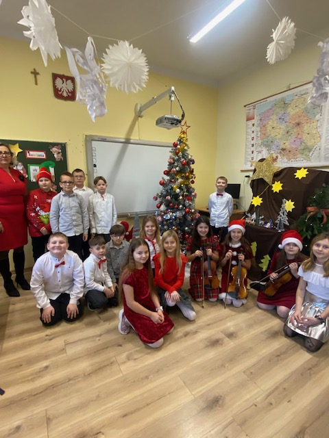 W ostatni dzień nauki szkolnej przed przerwą świąteczną w naszej szkole zapanował wyjątkowy nastrój. W klasach odbyły się wigilie – pełne radości, uśmiechu i życzeń. Czuć było magię nadchodzących Świąt Bożego Narodzenia – z klas rozbrzmiewały kolędy, stoły zdobiły świąteczne dekoracje, a uczniowie pojawili się w eleganckich strojach.