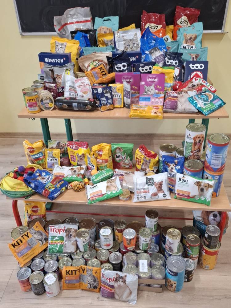 W naszej szkole podobnie jak w poprzednich latach zorganizowana została zbiórka karmy dla psów i kotów. Zbierana była mokra oraz sucha karma a także akcesoria np.zabawki. Do akcji włączyło się wielu uczniów. Wszystkie tak cenne dary będą przekazane Towarzystwu Opieki nad Zwierzętami w Tarnowie, oddział Skrzyszów. Wolontariusze podzielą ofiarowaną karmę pomiędzy bezdomne lub objęte opieką psy i koty potrzebujące wsparcia w trudny zimowy czas. Organizatorem zbiórki była pani Grażyna Antosz wraz z uczniami ze Szkolnego Koła Wolontariatu. Dziękujemy wszystkim, którzy włączyli się w tak ważną akcję-uczniom i ich rodzicom, za okazane serce i każde opakowanie karmy.